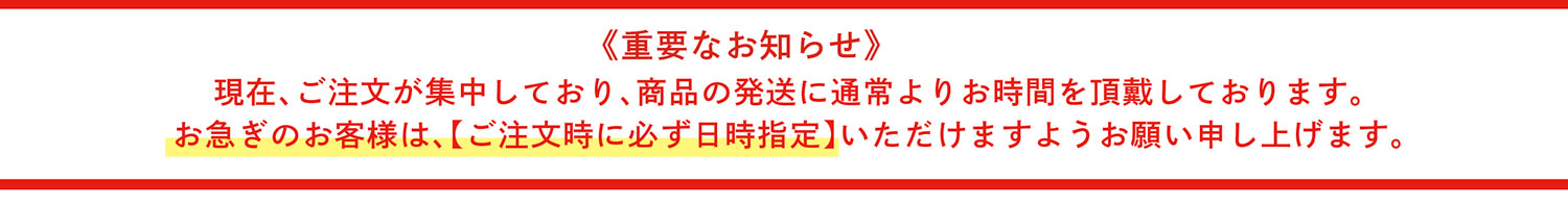 土・日・祝日にいただいた注文・お問い合わせは、休み明けに対応させていただきます。